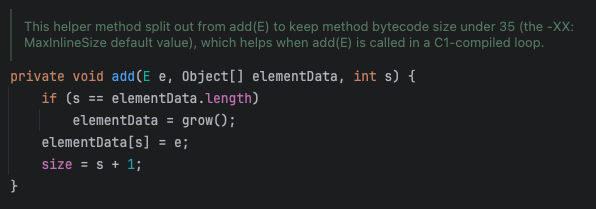 이 과정에서 modCount로 변경을 추적하여 fail-fast 동작을 제공한다.